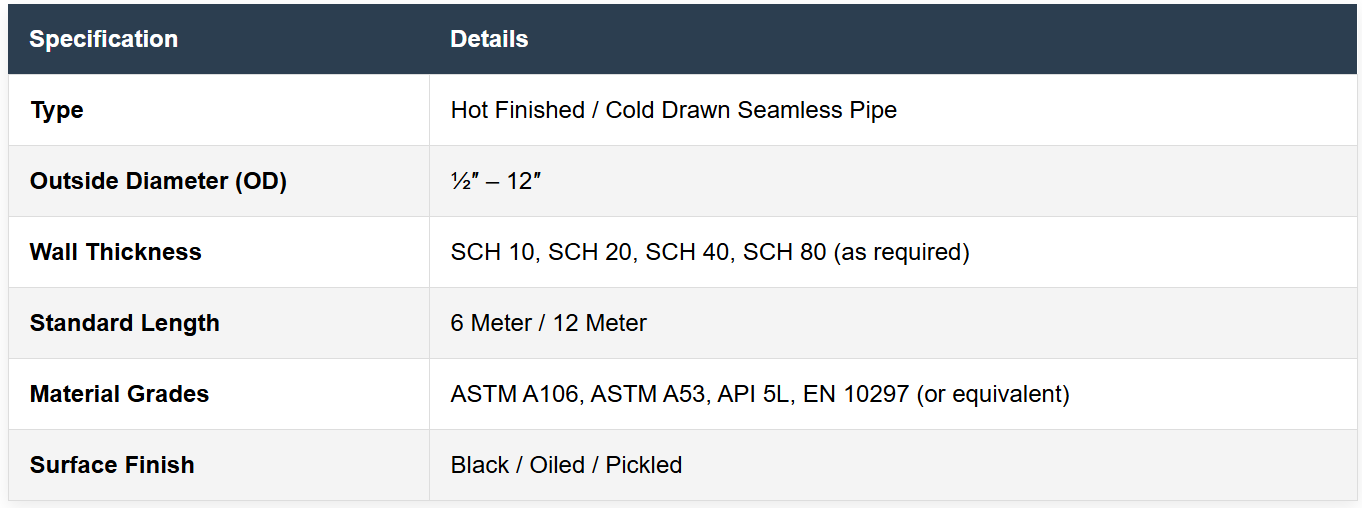 At M/S. Ma Steel Engineering, we supply premium-quality seamless pipes suitable for